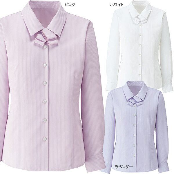 ボンオフィス事務服 【制菌加工】長袖リボンブラウス RB4164 NFシャドーストライプ