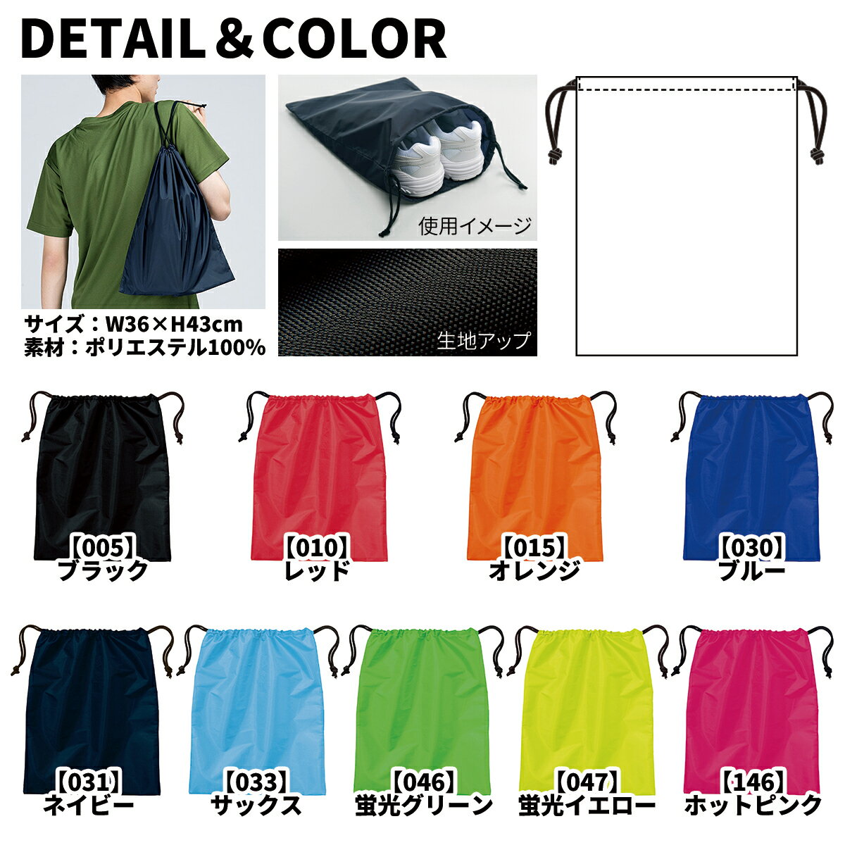 Printstar プリントスター シューズバッグ 無地 全9色 軽量 軽い ナイロン 小物入れ 巾着袋 上履き袋 00785 メール便可5