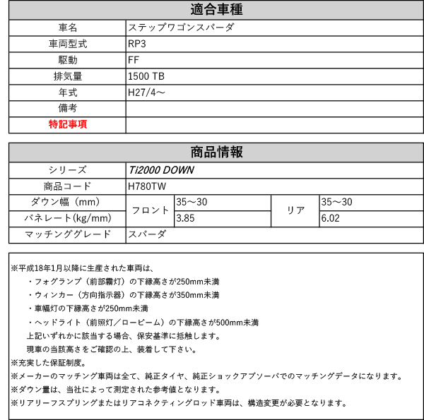 [RS-R_Ti2000 DOWN]RP3 ステップワゴンスパーダ_スパーダ(2WD_1500 TB_H27/4〜)用車検対応ダウンサス[H780TW]