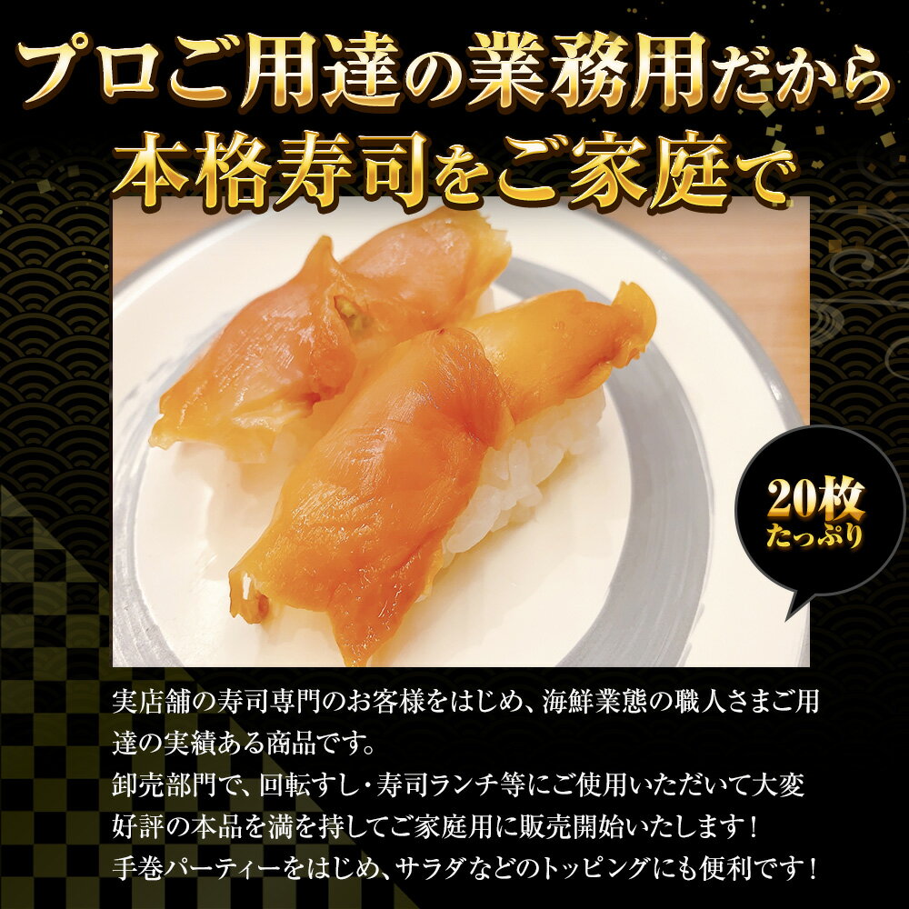 よく一緒に購入されている商品真あじフィーレ 20枚 寿司ネタ あじ アジ 1,280円こはだ酢〆 20枚 寿司ネタ こはだ コハダ 498円とろサーモン スライス 20枚 寿司ネタ サー1,080円★ ご家庭で本格握り寿司に挑戦! ★ プロご用達の業務用寿司ネタです! 仕込み不要!解凍するだけで使用できます! 回転すしや寿司ランチなどに使用されている実績ある商品です! 握り寿司はもちろん、手巻パーティーやちらし寿司のトッピングにも大活躍! 味はもちろん、コスパも最高! ああ、夢の寿司食べ放題・・・ 【名称】赤貝開き31/40 【内容量】20枚 【原材料】赤貝(中国) 【添加物・仕様】業務用寿司ネタ 【保存方法】冷凍(-18℃以下)で保存 【賞味期限】パッケージに記載 【販売者】有限会社 魚奏(うおそう)大阪市西淀川区御幣島3-8-19 ※商品に記載の消費期限は業務用冷凍庫にて-18℃以下で保たれた一定の温度管理のもとで保管した場合の期限となっております。 ※一度解凍したものを再冷凍した場合、品質を保つことが困難となります。解凍後は速やかに当日中にお召し上がりください。 類似商品はこちら赤えび開き 20尾 約180g 寿司ネタ えび998円こはだ酢〆 20枚 寿司ネタ こはだ コハダ 498円ボイルしゃこ 20枚 寿司ネタ しゃこ シャコ2,280円真あじフィーレ 20枚 寿司ネタ あじ アジ 1,280円つぶ貝スライス 20枚 寿司ネタ 貝 粒貝 ツ1,180円やりいか 20枚 寿司ネタ いか イカ 烏賊 680円とろサーモン スライス 20枚 寿司ネタ サー1,080円炙りサーモン スライス 20枚 寿司ネタ 炙り938円寿司えび 20枚 寿司ネタ えび エビ 海老 780円新着商品はこちら2025/12/13生ずわいがに ハーフポーション 総重量約6805,980円2025/12/13生ずわいがに ハーフポーション 総重量約6805,980円2025/12/13生ずわいがに ハーフポーション 総重量約1.38,960円再販商品はこちら2025/12/23生ずわいがに ぐるむき 1kg 40本入 太9,800円2025/12/23Z かに カニ 蟹 ずわいがに ズワイガニ カ13,800円2025/12/20特大生冷凍さんま 2kg 送料無料 生食可能 8,800円2025/12/24 更新
