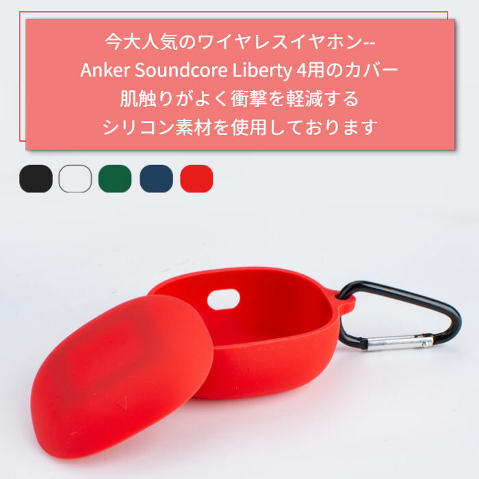 Anker Soundcore Liberty 4 専用 シリコン ケース カラビナ付き 計6色 カバー 無線充電可 開閉可能 耐衝撃 傷防止 アンカー ワイヤレス イヤホン サウンドコア リバティ 便利 保護 国内発送 送料無料