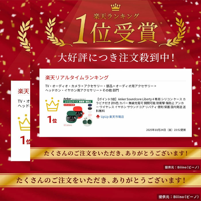 商品説明AnkerのワイヤレスイヤホンSoundcore Liberty 4用のカバーです。 肌触りがよく衝撃を軽減するシリコン素材を使用。 充電ケースにピッタリとフィットし装着したままケースの開閉ができるほか そのままワイヤレス充電も可能です。 付属のカラビナを使ってカバンなどにぶら下げて持ち運びもできます。 お好みのスタイルにあわせて5つのカラーからお選びいただけます。 ※入荷時期によって付属するカラビナの形状が写真と異なる場合があります。対応モデルAnker Soundcore Liberty 4サイズ70×60×34mm(突起部含む)、厚さ:約2.2mm素材シリコンカラーブラック、ホワイト、レッド、ネイビー、グリーン、ピンク保証期間購入から30日間配送方法クリックポスト(追跡番号付きメール便、ポスト投函) ご注文から2営業日以内に発送 出荷からお届けまでに1~5日前後かかります(地域により異なる、日時指定不可) ※複数個発注の場合は配送方法が変更となる場合があります。注意事項※海外メーカー品のため簡易パッケージとなります。 ※脱落防止のため内側のフィルムを剥がし粘着部を貼り付けるように装着してください。 ※カラビナ装着時はケースを大きく振り回さないでください。 ※当商品は衝撃などから商品本体を完全に保護することを保証するものではありません。 ※お使いのモニターによって実際の色とは異なって見える場合がございます。 ※商品ロットによって形状やカラーの色合いが予告なく変更となる場合があります。関連商品はこちらAnker Soundcore P30i 用 シリコン ケー...Anker Soundcore A30i 専用 シリコン ケ...イヤーチップ イヤーピース Anker Sound...