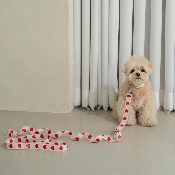 ※予約販売【OUNCE】heart bongbong leash(3color) 韓国 犬用品 ドッググッズ リード 散歩リード 犬リード 散歩グッズ 散歩用品 マナーポーチ 小型犬