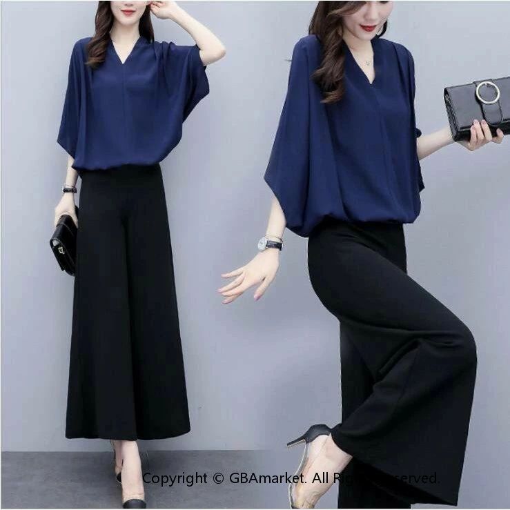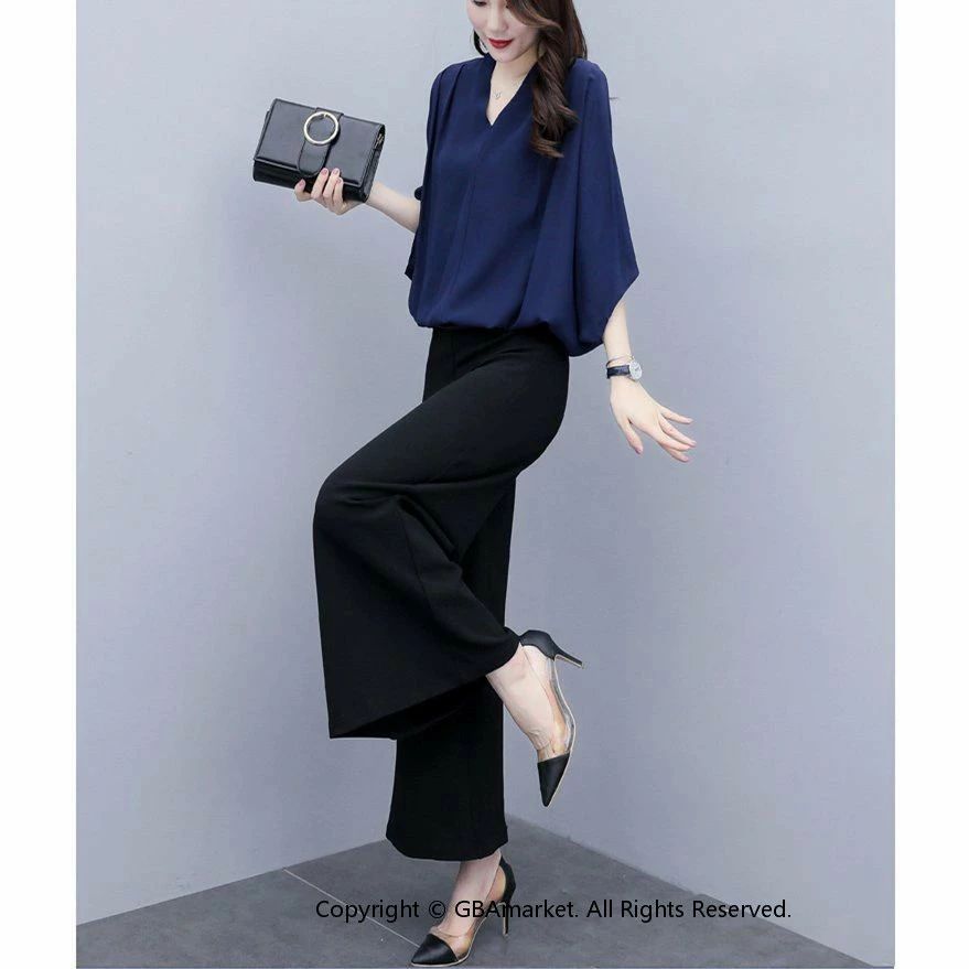 セットアップ レディース 春夏 オシャレセットアップ 半袖ブラウス 九分丈ワイドパンツ シフォン上下セット 通勤OL 30代40代 50代大きいサイズ 母の日 プレゼント