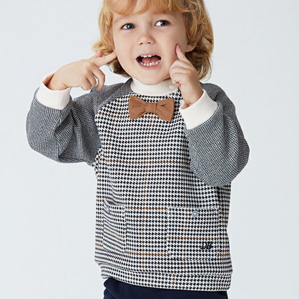 子供服 トップス 男の子 スウェット トレーナー 千鳥格子 チェック 肩ボタン 公園 ベーシック 普段着 フォーマル 学校 保育園 幼稚園 お出かけ カジュアル 春 秋 冬 70 80 90 100 110 120 130 cm dh18628 dave&bella デイブ ベラ