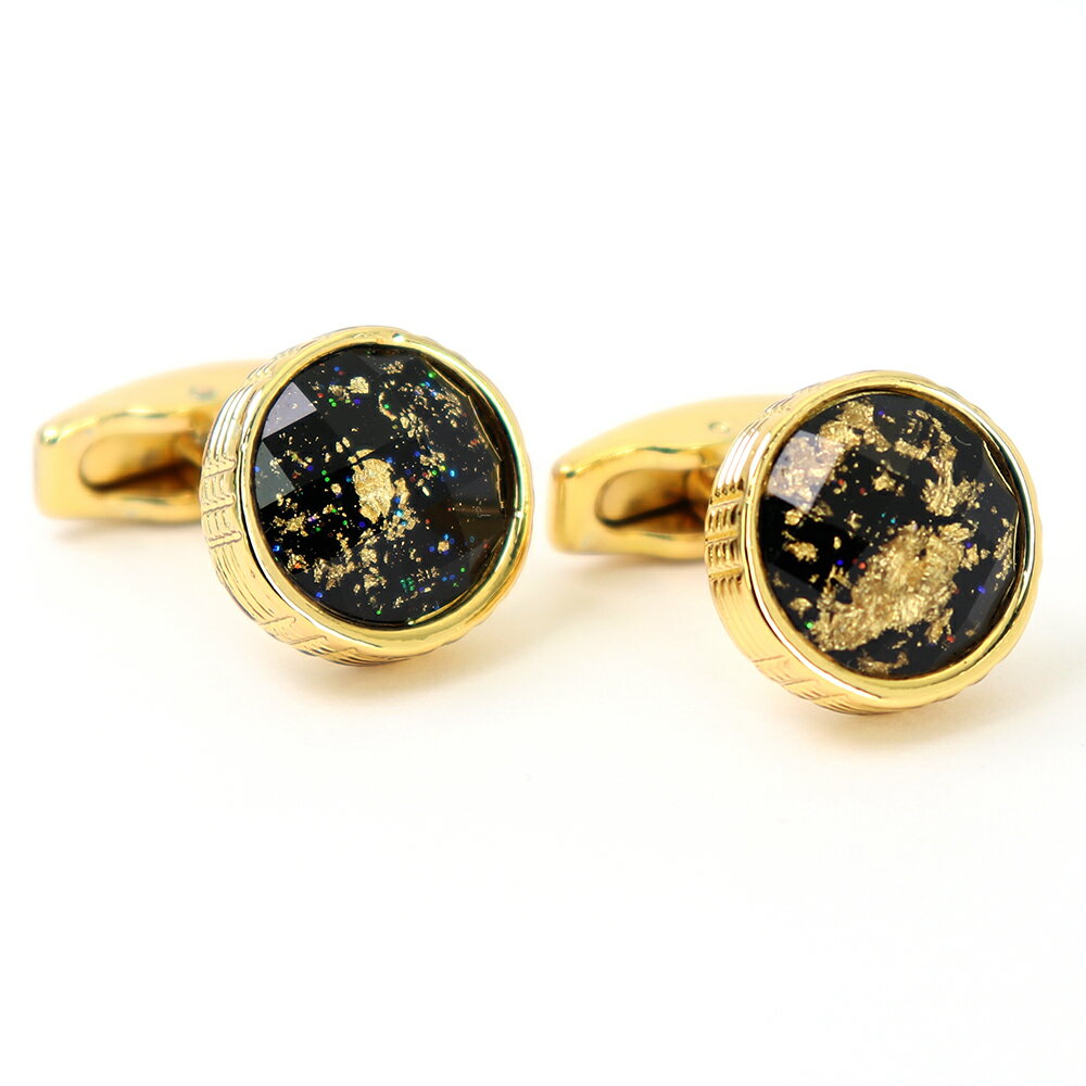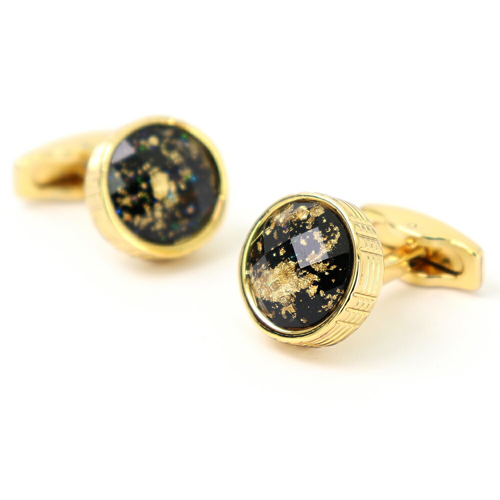内部も輝く 美しいカフスボタン【 ゴールド/ブラック 】 【 ゴールド系 おしゃれ 男女 カフリングス ゴージャス フォーマル 結婚式 プレゼント カフス専門店 】