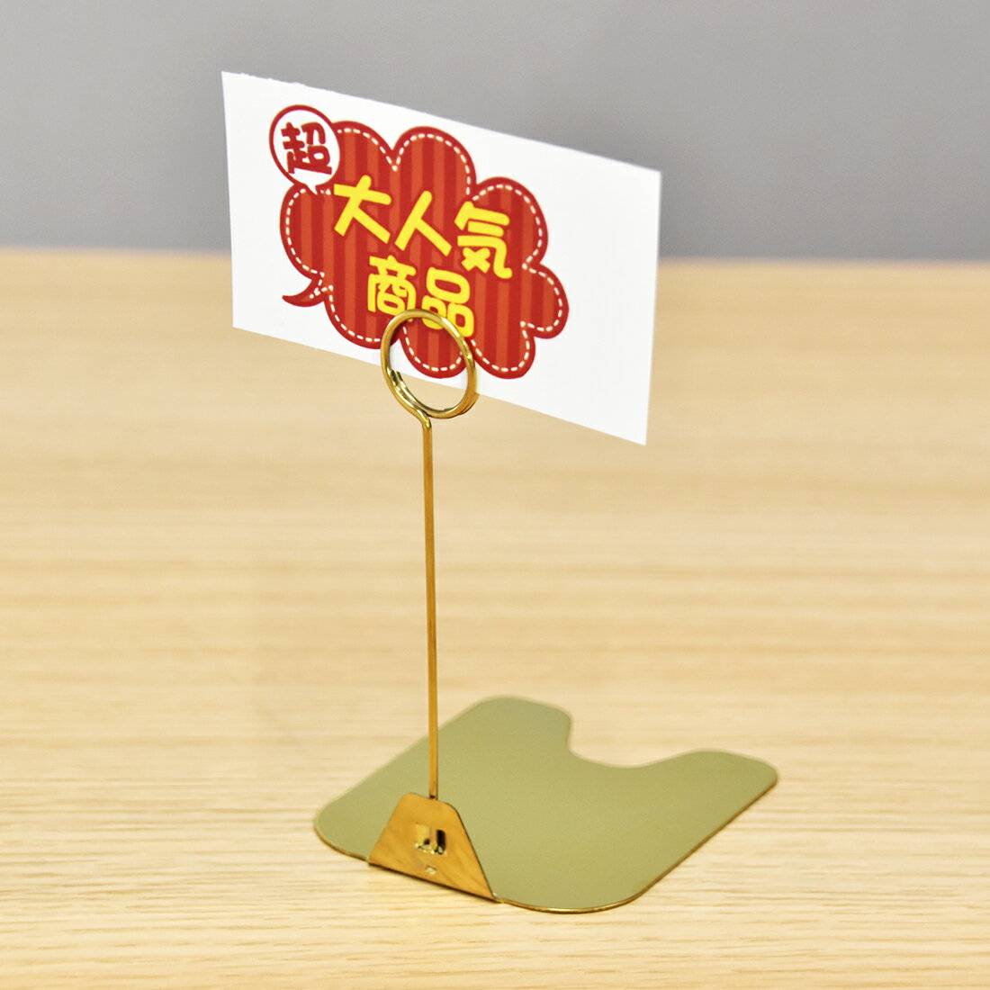 リングスタンド H100 ゴールド W65×H100×D80 | プライスカード おしゃれ かわいい カード立て POP立て プライスカード立て プライスクリップ 値札クリップ メモクリップ カードスタンド ステンレス 【代引きOK(個人宅配除く)】