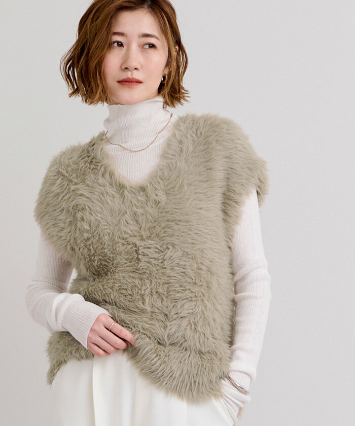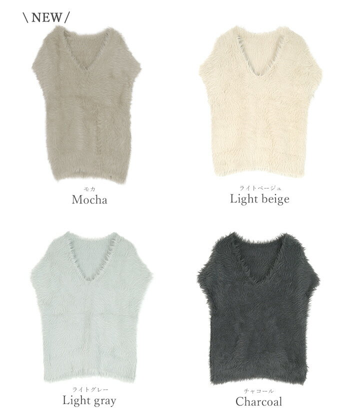 【クーポン利用で3073円】シャギーニットベスト トップス レディース ニット Vネック ノースリーブ シンプル レイヤード