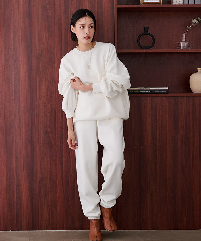 商品詳細 商品説明 ◆DETAIL スウェットほどカジュアルになりすぎない、大人の女性におすすめのニットです。 アームホールや身頃がゆったりとしたリラックス感のあるシルエットでラフに着用いただけます。 ◆FABRIC 表面が滑らかで肌触りが良く、スウェットライクな肉感ときれいな表面感が特徴です。 ◆COORDINATE 同素材シリーズのスウェットライクニットジョガーパンツとセットアップでもこなれ感ある印象できて頂けます。 ※生産時期により、セットアップの提案をさせて頂いております商品と色差が生じる場合がございます。予めご了承ください。 サイズ / 単位(約cm) 【S】前着丈:63、後着丈:66、肩幅:62.5、袖丈:53、アームホール:50、バスト:120、裾幅:38.5 【M】前着丈:65、後着丈:68、肩幅:64.5、袖丈:54、アームホール:52、バスト:124、裾幅:40.5 【L】前着丈:67、後着丈:70、肩幅:66.5、袖丈:55、アームホール:54、バスト:128、裾幅:42.5 ◆当店のサイズ表記について ※製造工程の関係上、各採寸箇所実寸(平置き)より【約-3cm~+3cm】程度は誤差の許容範囲とさせて頂いております。 素材 レーヨン 42%、ナイロン 30%、ポリエステル 28% 洗濯表示 伸縮性 あり 透け感 淡色に多少あり 生産国 中国 model ◆黒川翼さん162cm Shoes:23.5cm着用 / サイズ:M カラー:ホワイト、グレー、ブラック◆model02166cm Shoes:24cm着用 / サイズ:M カラー:ホワイト MDL00153/MDL00331 関連アイテム スウェットライクニットジョガーパンツ ご購入前に必ずご確認ください 商品により、色落ち・色移りがある場合がございます。 濃色品は着用の際、摩擦により他の衣料や下着に色移りする可能性がありますので、淡色との組み合わせにはご注意ください。 生産時期により、予告なくデザインの仕様やカラーの色味、素材が変更される場合がございます。 当商品は機械による生産の過程上、どうしても"生地を織る際の糸の継ぎ目"や多少の"ほつれ"、他繊維の"混紡"、素材によるネップ・色ムラが生じる場合がございます。また、同商品でも、形・サイズや柄・生地感に多少の"誤差"が生じる場合がございます。 照明等の撮影環境により、モデル着用画像は若干お色味が異なって見えますので、商品カラー画像をご確認ください。(お客様のモニター環境により、実際のお色味と多少異なる場合がございます) 当商品がすべて畳んだ状態での輸送・保管・配送となります為、商品の素材によりましては、開封時シワが生じる場合がございます。 サイズは、実寸サイズを測っているため多少誤差がでる場合がございます。(商品ページの表記とメーカータグのサイズとは異なる場合がございます) 漂白剤は使用しないでください。 素材の性質上、染料の匂いが強いものがございます。 商品の在庫につきまして、管理には万全を期してますが、姉妹店と在庫を共有しております為、ご注文のタイミングや、検品時の不良品の発覚等により商品をご用意出来ない場合がございます。