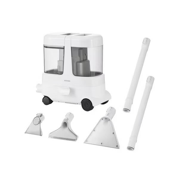 ■ アイリスオーヤマ(IRIS OHYAMA) ■大容量リンサークリーナー RNS-P1600 グレーホワイト15kPaのパワフルな吸引力で、布製品に付いた汚れを落とすことができます。大容量タンクで広範囲を洗浄可能です。◆ 主な特長 ◆布製品を丸ごと洗浄できるリンサークリーナーです。15kPaのパワフルな吸引力で、布製品に付いた様々な汚れを落とすことができます。大容量タンク(回収タンク約1.6L、清水タンク約1.8L)なので広範囲を洗浄可能です。タンクの容量アップにより汚水の処理と清水の補充の回数が減少しました。延長パイプ付きのフロアノズルで、屈むことなく掃除ができます。キャスター付きで、180°方向転換も可能です。3種類のアタッチメント(飛び散り防止ヘッド、ブラシ付きヘッド、フロアノズル)でお掃除がスムーズにできます。◆ 主な仕様 ◆■主要素材ABS、PP■商品サイズ(mm ・kg)幅370mm奥行190mm高さ355mm重量4.0kg■電源:AC100V(50/60Hz)■定格消費電力:520W■回収タンク容量(約):1.6L■清水タンク容量(約):1.8L■ホース長さ(約):φ35mm×1.7m■使用温度範囲:0〜40℃■電源コード長さ(約):5m■付属品:ホース、ホルダー、ブラシ付きヘッド、飛び散り防止ヘッド、フロアノズル(延長パイプ×2)簡易商品仕様シリーズ名:-ブランド名:IRIS OHYAMAメーカー型番:RNS-P1600代表カラー:ホワイトカラー:グレーホワイトスチームクリーナーのタイプ:キャニスターブランド名(カナ):アイリスオーヤマ
