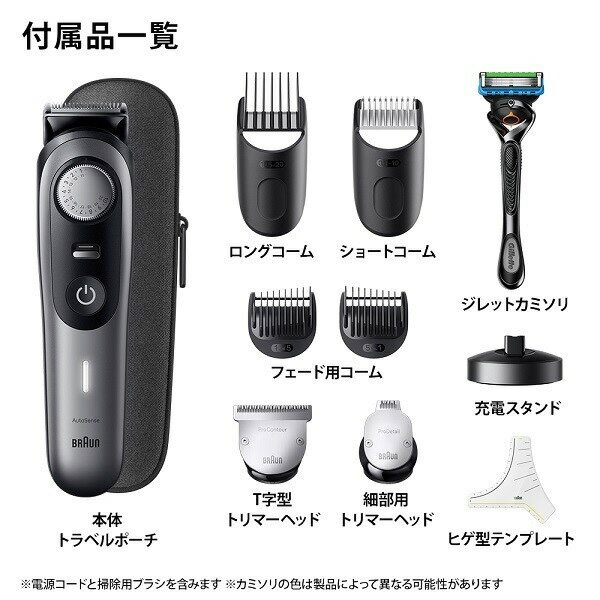 ■ BRAUN(ブラウン) ■ブラウン ヒゲトリマー BT9420◆ 主な特長 ◆●PROブレードはブラウン最高峰のフルメタルブレード。毛のひっかりを防ぐ。●T字型トリマーヘッド。頬や首に、まっすぐなヒゲのラインを作る。●細部用トリマーヘッド付属。あご下や口周りをより細かく調節する。●ダイヤルロックスイッチで長さ調節ダイヤルをロックし、前回使用した長さに固定。●人工知能テクノロジーでヒゲの濃さを読み取り、自動でパワーを調節。●お風呂ぞり、丸ごと水洗い対応。●2.5時間の充電で180分の稼働。◆ 主な仕様 ◆■本体サイズ(W×H×D)/本体質量:47×170×45mm / 175g■電源方式:充電式 100-240V■40段階の長さ調整■充電スタンド■トラベルポーチ■ヒゲ型テンプレート■1度の充電で180分稼働■コードレス■防水設計簡易商品仕様シリーズ名:ブラウン シリーズ9(ブラウン)ブランド名:BRAUN|ブラウンメーカー型番:BT9420代表カラー:グレー水洗い可:有電源方式:充電タイプブランド名(カナ):ブラウン