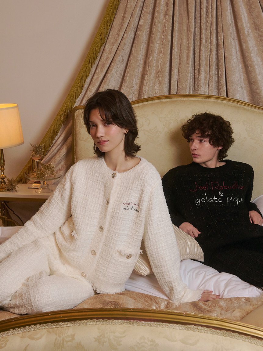 【予約商品について】 ※「先行予約販売中」「予約販売中」をご注文の際は予約商品についてをご確認ください。■重要なお知らせ※ 当店では、ギフト配送サービス及びラッピングサービスを行っておりません。ラッピング・ギフト配送について同時に複数の商品を注文された場合メーカー希望小売価格について置き配についてご利用ガイドgelato pique(ジェラートピケ)パウダーロゴジャガードプルオーバー&ロングパンツセット直営店舗:12/26(金)発売予定【寒い季節にうれしい厚め生地のパウダーセットアップ】【Fabric】POWDER(パウダー)…ふわふわもこもこの感触はそのままに、さらりとした肌当たりの、パウダリーなもこもこ素材。【Design/Styling】やや厚手の’パウダー’素材を使った、冬にぴったりの柔らかなカラーリングのセットアップ。プルオーバーにはキャッチーなロゴジャガードを、ボトムには細めの2色ボーダーをデザインしました。裾を絞ったシルエットで、おやすみ中もめくれにくく快適。カラーはピンク、ミント、ラベンダー、アイボリーの4色展開。HOMMEサイズとのペアコーディネートや、大切な方へのギフトにもおすすめです。※こちらの商品はクリスマス以降のお届け予定となります。※こちらの商品はラッピングサービス、セルフラッピング、eギフトサービスは対象外となります。あらかじめご了承ください。※照明の関係により、実際よりも色味が違って見える場合があります。またパソコン・スマートフォンなどの環境により、若干製品と画像のカラーが異なる場合もございます。予めご了承ください。商品の色味は、商品単品画像をご参照下さい。 ※商品画像はサンプルのため、色味やサイズ等の仕様に変更がある場合がございますので、予めご了承ください。【サイズ備考】[ボトム]ウエスト:68ー114cmヒップ:105cm股上:30cm股下:68cmわたり幅:31cm裾幅:13cm型番:PWNT255051-L1-3U QT4384【採寸】サイズ着丈バスト袖丈肩幅前下がり裾幅F59.5cm104cm53cm50cm9.5cm48cm商品のサイズについて【商品詳細】中国素材:トップス:ポリエステル97%,ナイロン2%,ポリウレタン1%/パンツ:ポリエステル97%,ナイロン2%,ポリウレタン1%サイズ:F[99]※画面上と実物では多少色具合が異なって見える場合もございます。ご了承ください。商品のカラーについてこの商品は先行予約商品のため返品・交換対象外です詳細はこちら >>