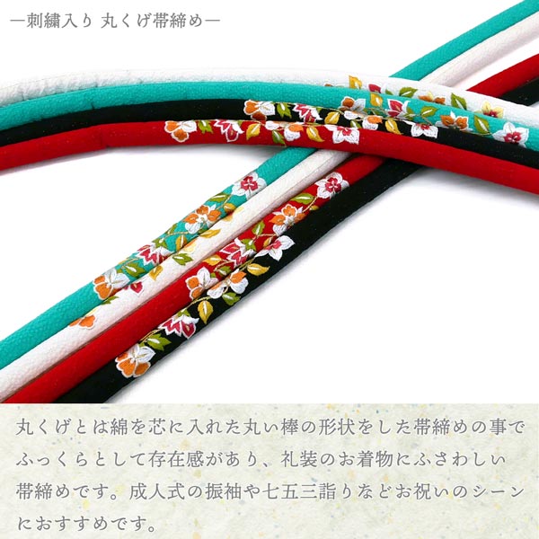 帯締め 丸くげ 刺繍入り 振袖 成人式 oj-036 正絹 丹後ちりめん 結婚式 卒業式 七五三 十三詣り 和装小物