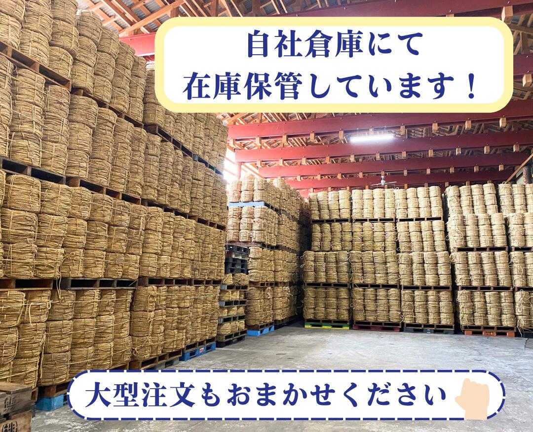 弊社工場で天然の稲わらから編んだ縄です。 強度を増すために中にジュート糸(黄麻)を使用しております。テグス糸や綿糸よりコストはかかりますが、早く土に還るため、環境にやさしい資材として農業用の用途でも安心してご使用いただけます。 太さ:2.0分(約6mm) 長さ:約165m 重さ:約2.5kg 天然の稲わらを使用している為、縄の長さ、太さ、色、強度などはさまざまな条件により異なります。 明細書は発行しておりませんのでご了承ください。 ストレッチフィルムで梱包してお届け致します。 梱包が不要な方は注文時、備考欄にご記入をお願い致します。 沖縄、離島の場合は別途送料がかかります。■■■■■ わら縄商品一覧 ■■■■■ ●わら縄1.5分 ●わら縄1.5分 5巻セット ●わら縄2.0分 ●わら縄2.0分 5巻セット ●わら縄2.5分 ●わら縄2.5分 5巻セット ●わら縄3.0分 ●わら縄3.0分 5巻セット ●わら縄2.0分 大玉仕様 約5kg ●わら縄2.5分 大玉仕様 約6kg ●わら縄3.0分 アウトレット ■■■■■■■■■■■■■■■■■■