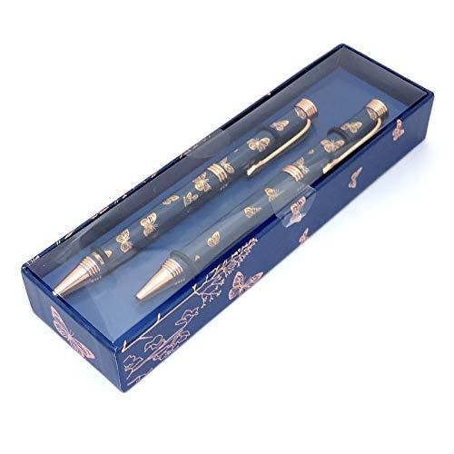 ボールペンセット(2 本) ギフトステーショナリー 黒インク 蝶柄 花柄 プレゼント 贈り物 文具 イギリス 輸入雑貨