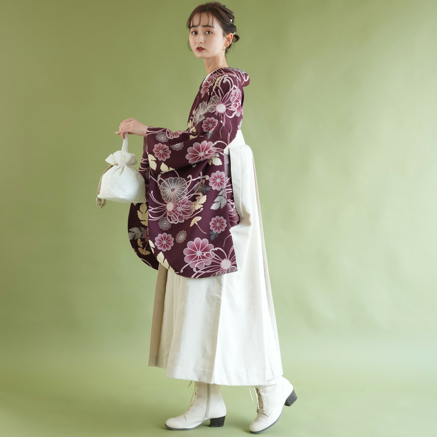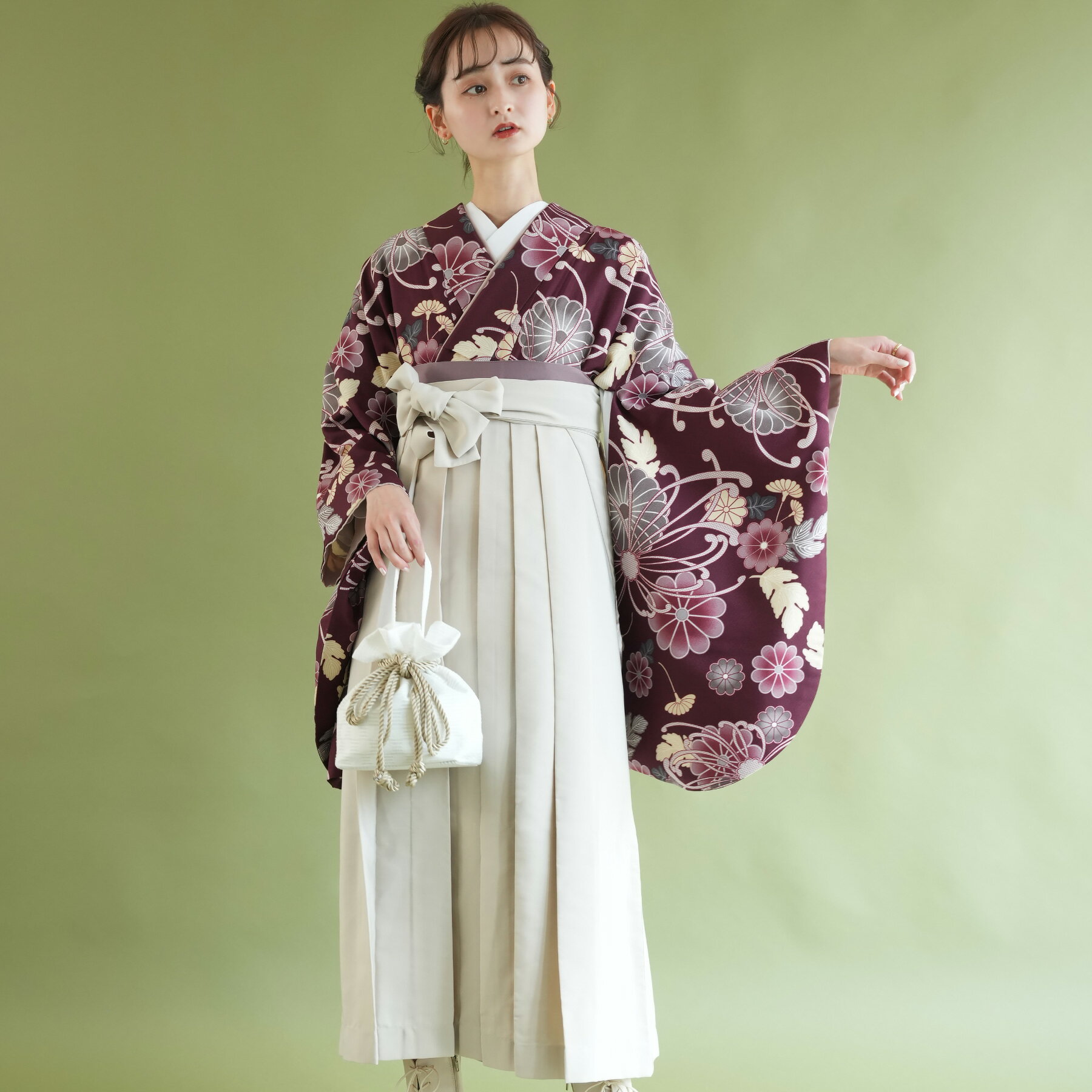 【レンタル】【ひよこ商店 袴 17点セット ボルドーに古典菊】二尺袖着物 はかま フルセット 卒業式 大学生 専門学生 レディース 女性 袴91cm(身長153-158cm)ブーツ着用時165cmまで適応 足袋プレゼント 重ね衿縫い付済 往復送料無料