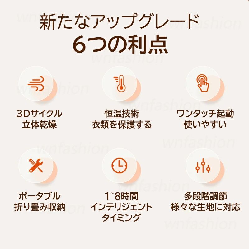 【商品詳細】 サイズ:26.5*11*26.5cm カラー:ホワイト 重量:約1.5kg 製品耐荷重:10KG 入力電圧:110V 50Hz 消費電力:600W 【商品特性】 乾燥機 靴乾燥機 くつ乾燥機 脱臭 恒温 温風 滑り止め 操作簡易 耐久性 無音 乾燥と暖房両用 多機能 恒温乾燥 小型 ミニ 持ち運び おしゃれ おすすめ 【適用シーン】 雨 小雨 豪雨 嵐 梅雨 雪の日 曇りの日 運動後 スポーツ 部活 汗 湿気 靴が濡れてしまう 雑菌 臭い におい 手袋 スニーカー スノーブーツ スニーカー ローカットスニーカー スリッパ 濡れたままの靴 子供 年寄り 大人 メンズ レディース 家庭 プレゼント ギフト 贈り物 【商品特徴】 3D循環立体乾燥: この家庭用乾燥機は3D循環立体乾燥技術を採用しており、衣類全体を均一に乾燥します。衣類がより早く、より効率的に乾くことで、湿気や臭いを防ぎます。 便携式折りたたみ収納: 小型で軽量な設計により、どこでも簡単に持ち運びでき、使用後はコンパクトに折りたたんで保管できます。限られたスペースでも便利に利用いただけます。 恒温柔らか乾燥: 恒温制御システムにより、衣類を優しく乾燥させ、繊維を保護します。過度の熱によるダメージを防ぎ、衣類の寿命を延ばします。 1~8時間のスマートタイマー: 1~8時間の範囲で設定可能なスマートタイマー機能を搭載しています。自動的に停止するため、電力の無駄遣いや過乾燥を防ぎます。 タッチ操作で使いやすい: 直感的なタッチスクリーンで簡単に操作でき、多段階の温度調節が可能です。様々な素材に対応し、最適な乾燥モードを選択できます。 【商品説明】 この家庭用衣類乾燥機は、3D循環立体乾燥技術を採用し、衣類を均一かつ迅速に乾燥します。 コンパクトで軽量な設計により、どこでも手軽に使用でき、使用後は簡単に折りたたんで保管可能です。 恒温制御システムにより、衣類を優しく乾燥させ、繊維を保護します。1~8時間のスマートタイマー機能で、自動的に停止し、電力の無駄遣いや過乾燥を防ぎます。 直感的なタッチスクリーンで操作が簡単で、多段階の温度調節が可能です。様々な素材に対応し、最適な乾燥モードを選択できます。 家庭での日常使用だけでなく、布団や靴の乾燥にも最適です。この乾燥機があなたの生活を快適で便利にします。