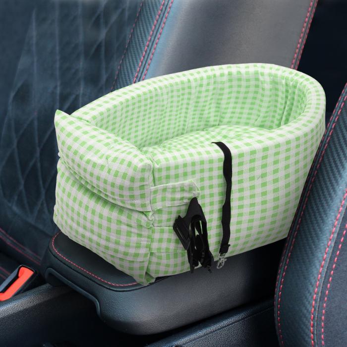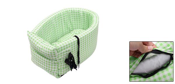 X AUTOHAUX チェック柄スタイル犬用カーシート調節可能なストラップ中小型子犬猫シートペットソフト滑り止め底トラベルベッド緑色ホワイト