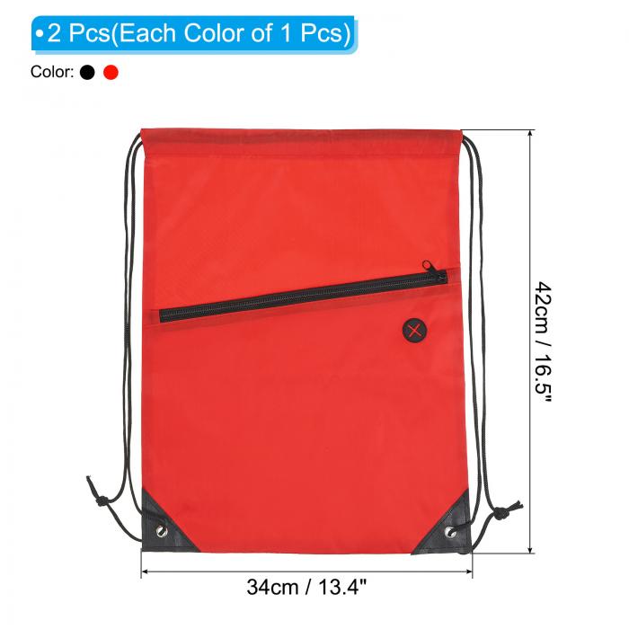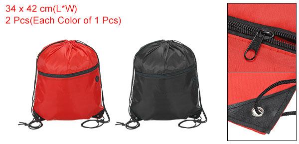 PATIKIL 13"x16.5" ポリエステル製 ドローストリングバッグ 2個セット ジム用 ドローストリングバックパック 黒 ジッパーポケット付き メンズ レディース ジム スポーツ ヨガ 旅行用 レッド 黒