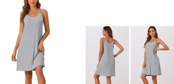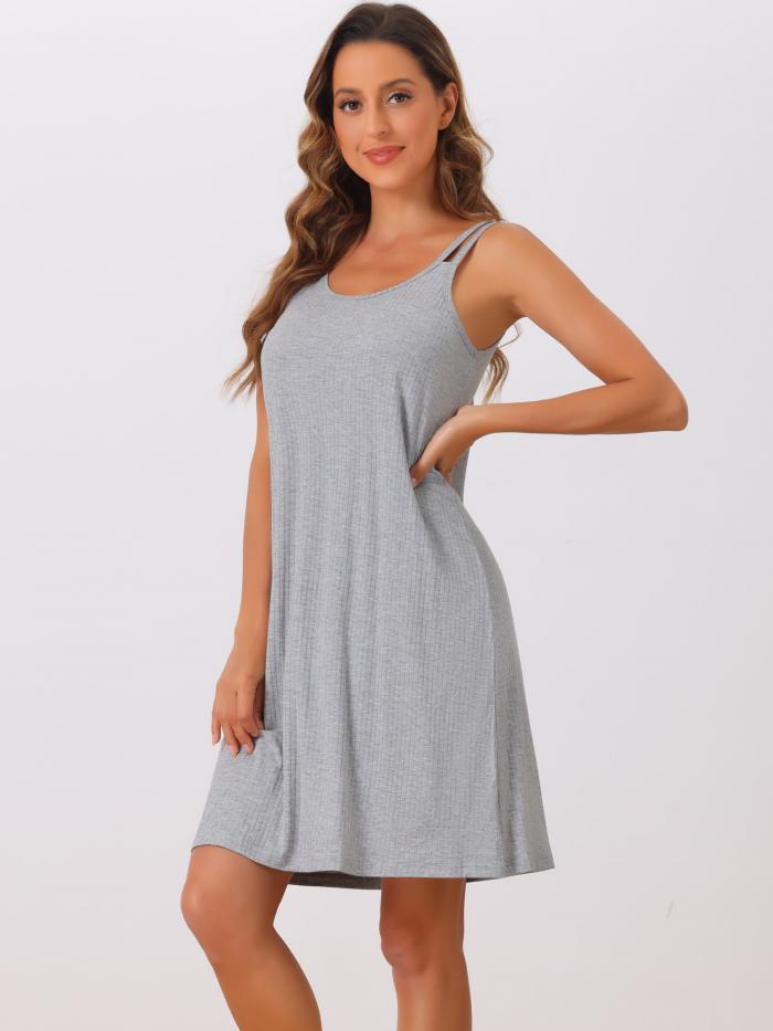 【期間限定10%OFF】cheibear レディース ノースリーブ パジャマ ドレス シュミーズ ネグリジェ 膝丈 ナイトシャツ キャミソール ナイトガウン グレー L