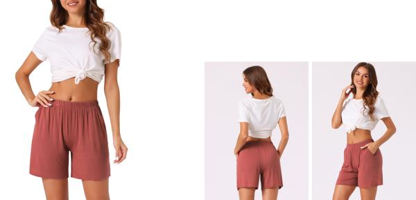 cheibear レディース モダール パジャマ ラウンジ ショーツ 柔らかく快適なパジャマ ボトムス ポケット付き 高伸縮性 ボクサー ショーツ 寝巻き レッド XS
