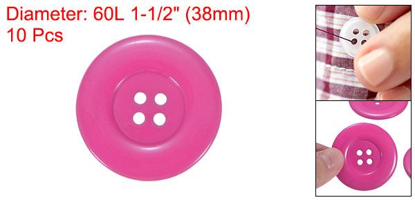 uxcell 10個60Lボタン1-1/2"(38mm)樹脂丸フラット4穴クラフトボタン 縫製衣類とDIY用 ローズレッド