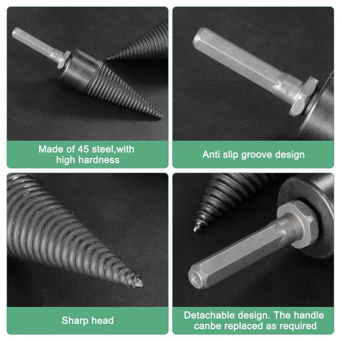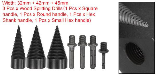 M METERXITY 3パックのウッドスプリッタードリルビット32mm 42mm 45mm 4つのハンドル(スクエア ラウンド ヘックスシャンク 小さなヘックス)薪割りドリルビット 家庭/屋外/ストーブ/農場用 [黒 グレー]