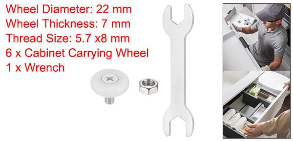 uxcell 22 mm引き出しローラーホイールキャビネット位置決めスライドネジレンチ付きファイルドキュメント引き出しクラフト交換部品ホワイト 6個