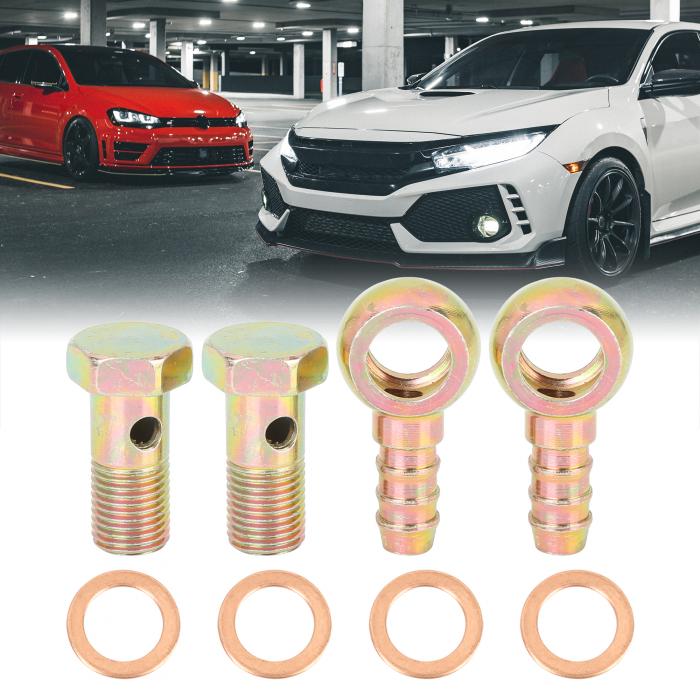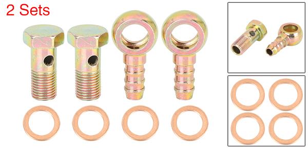 uxcell バンジョーホース 12 mm バーブボルト継手 バンジョーボルトウォッシャーキット ブロンズトーン 二輪車用 2セット