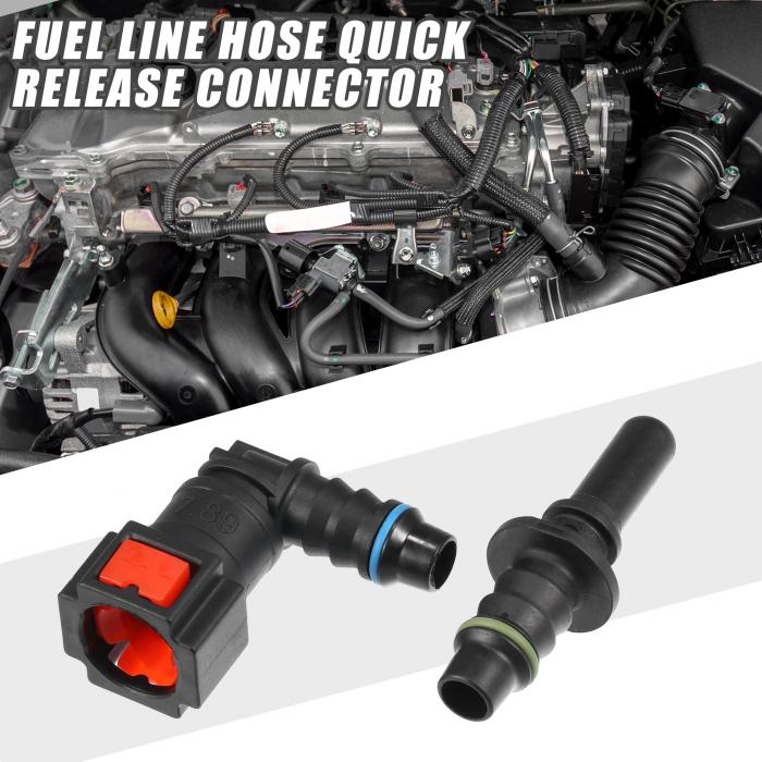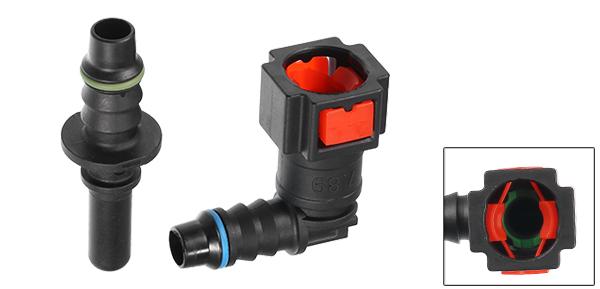 A ABSOPRO 車用燃料ラインホースクイックリリースコネクターキット 90度 5/16" 7.89mm SAEから5/16" 8mm ホースプラスチック レッド
