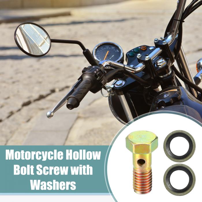ACROPIX ユニバーサルモーターサイクル3ホールホローボルトスクリューとワッシャーセット ブレーキホロースクリュー メトリックスレッド ブロンズ色 - 6個入り M8*1.25