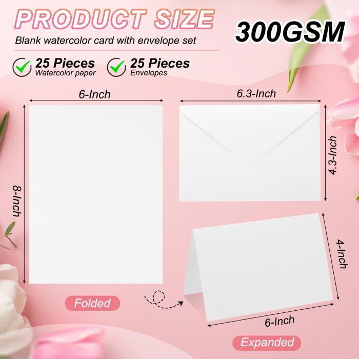 PATIKIL 25枚 ポストカード 絵手紙用 140lb/300 G S M コットン 水彩紙 特厚口ポストカード アートペイントクリエイティブサンクノート用封筒付き 101mm x 152mm 折りたたみサイズ(青ボックス)