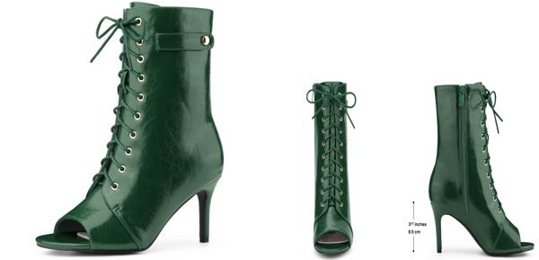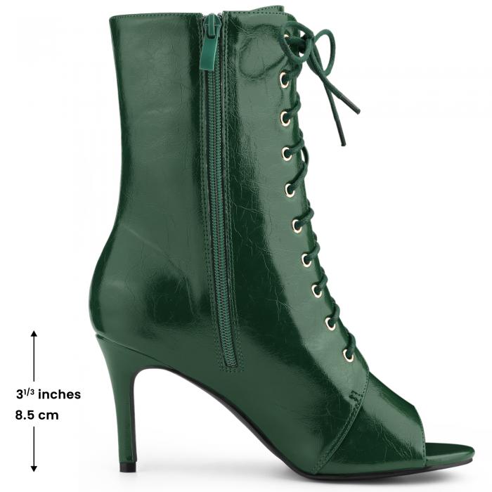 Allegra K レディース レースアップ ピープトゥ スティレットヒール アンクルブーツ ダーク緑 25.5cm