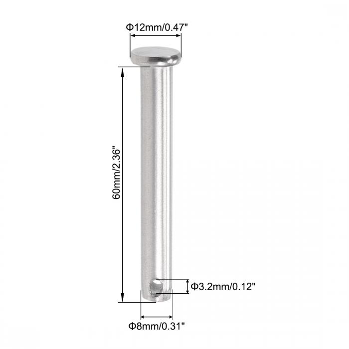 uxcell シングル穴クレビスピン スリップフック リフタピン- 8mm x 60mm フラットヘッド 304ステンレス鋼 4個入り