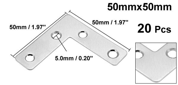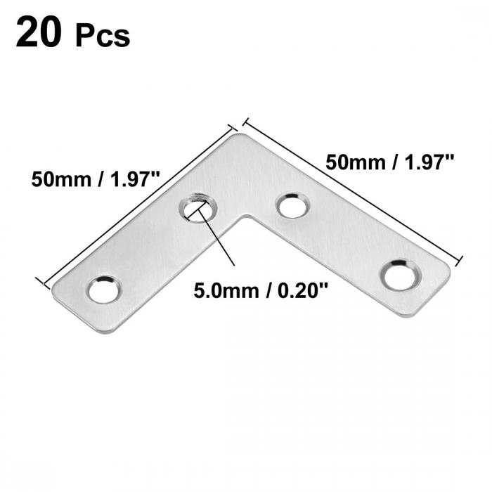 uxcell 角度コーナーブレース 修理ブラケット フラットプレート L型 50mmx50mm 20個入り