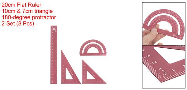 uxcell ジオメトリセット 20 cmメトリックメジャー レー ザー 彫刻 アルミ定規 メタル定規セット 三角分度器定規ツールセット 教室 オフィス 家庭用 レッド 2セット4個/セット