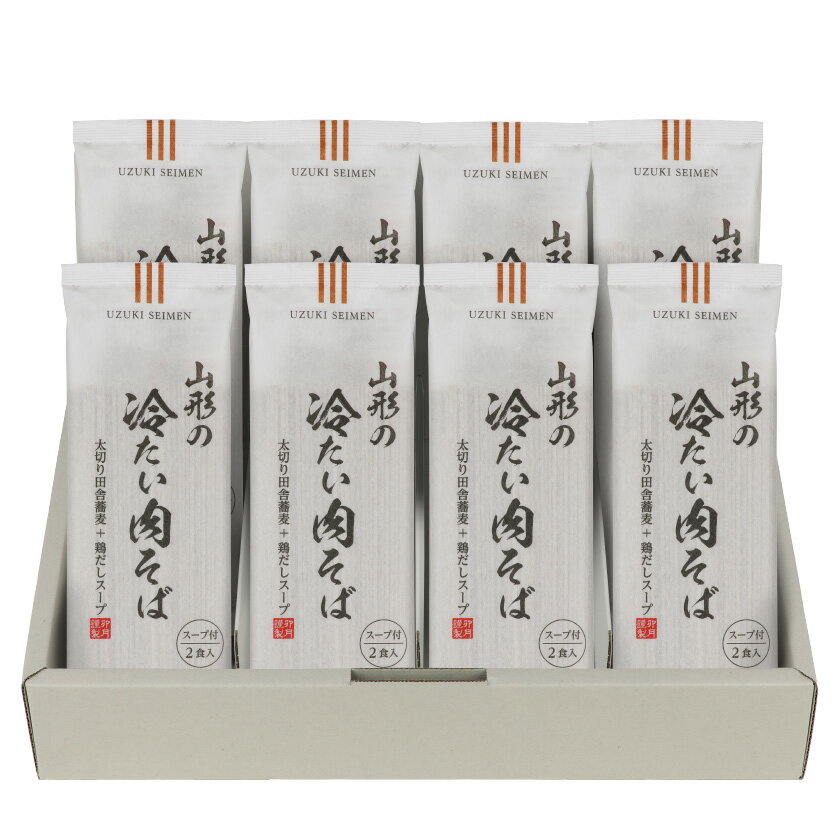 25秋新そば★【スープ付2食分】 山形の冷たい肉そば 8袋入(約16食分)鶏のうま味が効いたあっさりしょうゆ味のスープとコシの強い太切り蕎麦山形 寒河江 卯月製麺 乾麺御歳暮 御礼 内祝 還暦祝 米寿祝 退職祝 誕生日