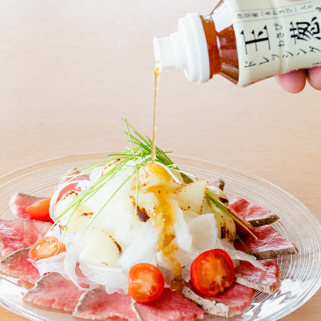淡路島たまねぎ × 伊豆産本わさび 玉葱わさびドレッシング ツーンと甘い!がクセになる。! たまねぎとわさびが出会って生まれた 新感覚ドレッシング! たまねぎの甘みとキュンとくるわさびが奏でるハーモニー 淡路島たまねぎと伊豆産本わさびの運命的な出会いにより、 ありそうでなかったドレッシングが誕生しました。 サラダはもちろんローストビーフやカルパッチョにもよく合います。 品名: 分離液状ドレッシング 原材料名: しょうゆ、食用植物油脂、砂糖、醸造酢、たまねぎ、本わさび、食塩、調味料(アミノ酸等)、増粘剤(キサンタンガム)、香料(原材料の一部に小麦、大豆を含む) 内容量: 170ml 保存方法: 直射日光を避け、涼しい場所で保存してください。 賞味期限: ラベル部分に記載 販売者: 株式会社うずのくに南あわじ BF 兵庫県南あわじ市福良丙947-22 栄養成分表(100gあたり): ●エネルギー259Kcal●たんぱく質2.7g●脂質20.1g ●炭水化物16.0g●ナトリウム2586mg (当社調べ)玉葱わさびドレッシング(500ml) お徳用ボトルの大きなサイズの淡路島産のたまねぎを100%使った玉葱わさびドレッシングはご家庭用でも業務用でもOK!