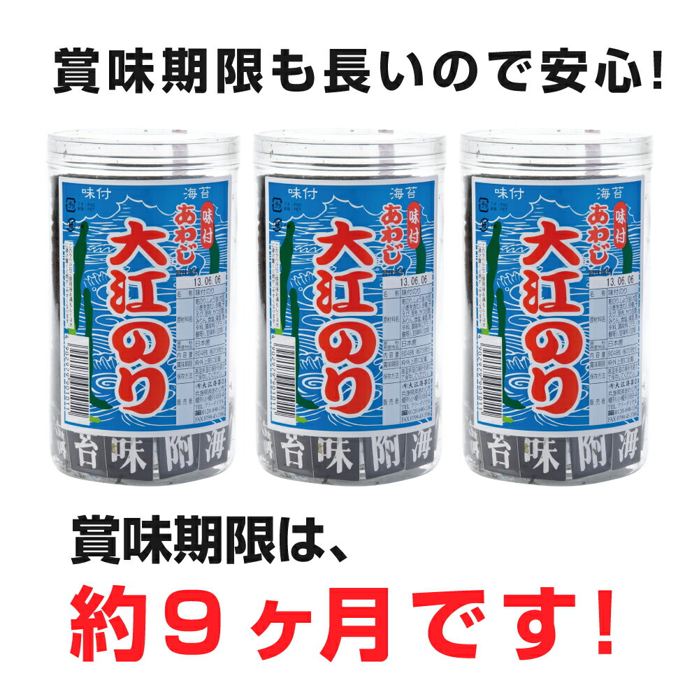 あわじ 大江のり(48枚入)大江海苔 おおえのり 淡路島 のり 海苔 ノリ 常温味付のり1本あたり8切48枚(板のり6枚分) -高温多湿、直射日光を避けて保存して下さい。 日本産 乾のり、しょう油(大豆、小麦を含む)、砂糖、干えび、昆布、かつお節、みりん、食塩、清酒、香辛料、調味料(アミノ酸等)、甘味料(甘草)大豆、小麦 賞味期限(別途ラベルに記載) 販売者 (有)大江海苔〇 兵庫県南あわじ市榎列小榎列189-4 ※15個単位での包装及びのし掛けはお受けできません。また1個単位での包装、のし掛け及び小分け用ビニール袋のご用意は別途料金を頂戴いたします。ご希望のお客様へのはご注文後に別途連絡をし、ご了承をいただき次第請求金額変更及び発送手配をいたします。上記をご理解の上、ご注文いただきますようお願い申し上げます。