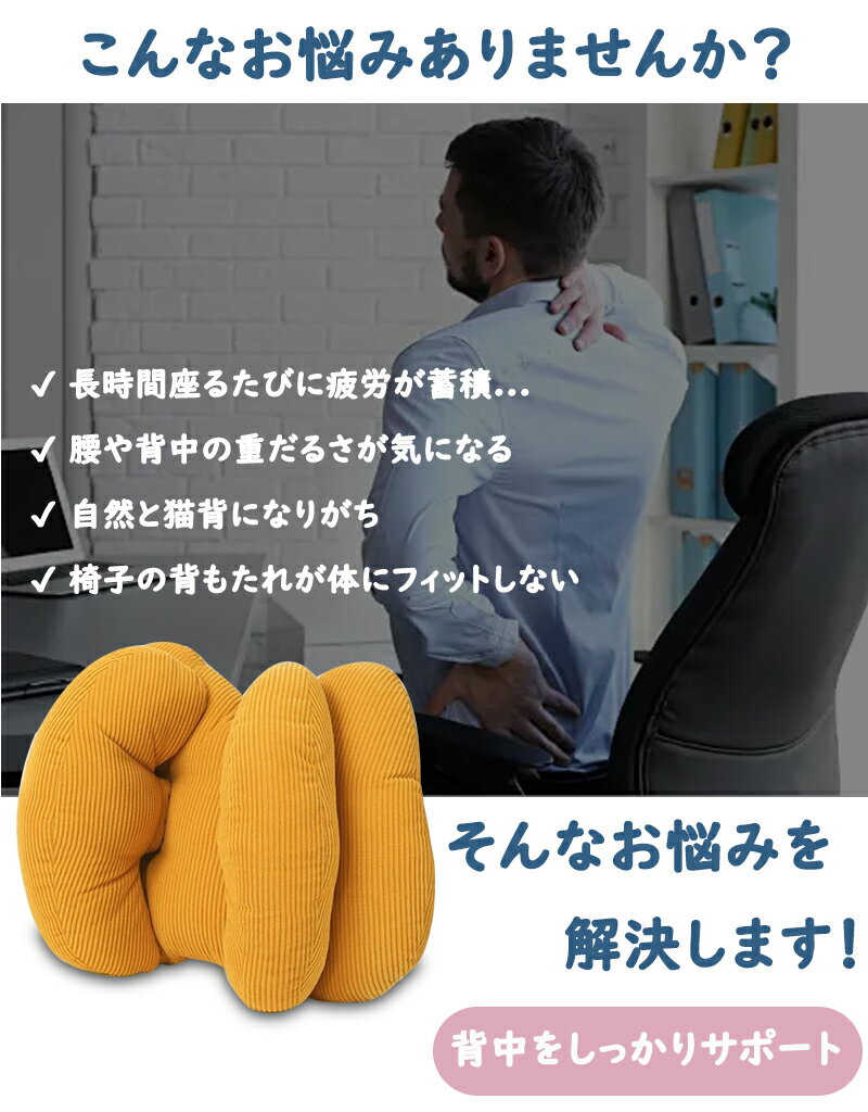 商品情報 商品名 腰枕 背もたれクッション ランバーサポート 人間工学設計 体圧分散 通気性抜群 車 オフィス デスクワーク 椅子用 カバー洗える ハンドル付き 持ち運び便利 商品詳細 サイズ:約長さ40cmx幅20cmx高さ35cm カバー:コールテン生地 中材:pp綿 商品特徴 1.腰への負担を軽減する設計 体重を分散させる構造により、腰部への過度な圧力を低減します。 長時間の運転やデスクワーク時にも腰の筋肉への負荷を和らげ、快適な姿勢を維持するのをサポートします。 2.自然な腰椎カーブをサポート 人間工学に基づいた独自の曲線設計が、腰椎の自然な前弯を保持するのを促します。 不良姿勢による腰への負荷を軽減し、健康的な姿勢づくりをサポートします。 3.高品質素材で快適性を追求 通気性に優れた素材と肌なじみの良いカバーを採用しています。 体形に合わせてフィットする柔軟性を持ち、洗濯可能で清潔を保てます。 4.さまざまなシーンで活躍 オフィスやレジャーなど、さまざまなシーンで腰を快適にサポートします。 腰の不快感によるイライラや疲労を軽減し、体の感覚を改善するのに役立ちます。 5.便利なサイズと使いやすさ コンパクトなサイズで、重量も軽いため、持ち運びに便利です。 オフィス、車、飛行機など、さまざまな場所で使用することができ、腰を快適にサポートします。 また、柔らかく肌に優しい生地を使用しているため、快適性とお手入れのしやすさを兼ね備えています。 【ご注意ください】 ・本商品は腰痛や姿勢の改善を保証するものではありません。 ・万一、使用中に不具合や異常を感じた場合は、直ちに使用を中止してください。 ・商品の色や質感は、お客様のモニター環境によって実物と異なる場合があります。 ・サイズは若干の誤差が生じる場合があります。予めご了承ください。商品情報 商品名 腰枕 背もたれクッション ランバーサポート 人間工学設計 体圧分散 通気性抜群 車 オフィス デスクワーク 椅子用 カバー洗える ハンドル付き 持ち運び便利 商品詳細 サイズ:約長さ40cmx幅20cmx高さ35cm カバー:コールテン生地 中材:pp綿 商品特徴 1.腰への負担を軽減する設計 体重を分散させる構造により、腰部への過度な圧力を低減します。 長時間の運転やデスクワーク時にも腰の筋肉への負荷を和らげ、快適な姿勢を維持するのをサポートします。 2.自然な腰椎カーブをサポート 人間工学に基づいた独自の曲線設計が、腰椎の自然な前弯を保持するのを促します。 不良姿勢による腰への負荷を軽減し、健康的な姿勢づくりをサポートします。 3.高品質素材で快適性を追求 通気性に優れた素材と肌なじみの良いカバーを採用しています。 体形に合わせてフィットする柔軟性を持ち、洗濯可能で清潔を保てます。 4.さまざまなシーンで活躍 オフィスやレジャーなど、さまざまなシーンで腰を快適にサポートします。 腰の不快感によるイライラや疲労を軽減し、体の感覚を改善するのに役立ちます。 5.便利なサイズと使いやすさ コンパクトなサイズで、重量も軽いため、持ち運びに便利です。 オフィス、車、飛行機など、さまざまな場所で使用することができ、腰を快適にサポートします。 また、柔らかく肌に優しい生地を使用しているため、快適性とお手入れのしやすさを兼ね備えています。 【ご注意ください】 ・本商品は腰痛や姿勢の改善を保証するものではありません。 ・万一、使用中に不具合や異常を感じた場合は、直ちに使用を中止してください。 ・商品の色や質感は、お客様のモニター環境によって実物と異なる場合があります。 ・サイズは若干の誤差が生じる場合があります。予めご了承ください。