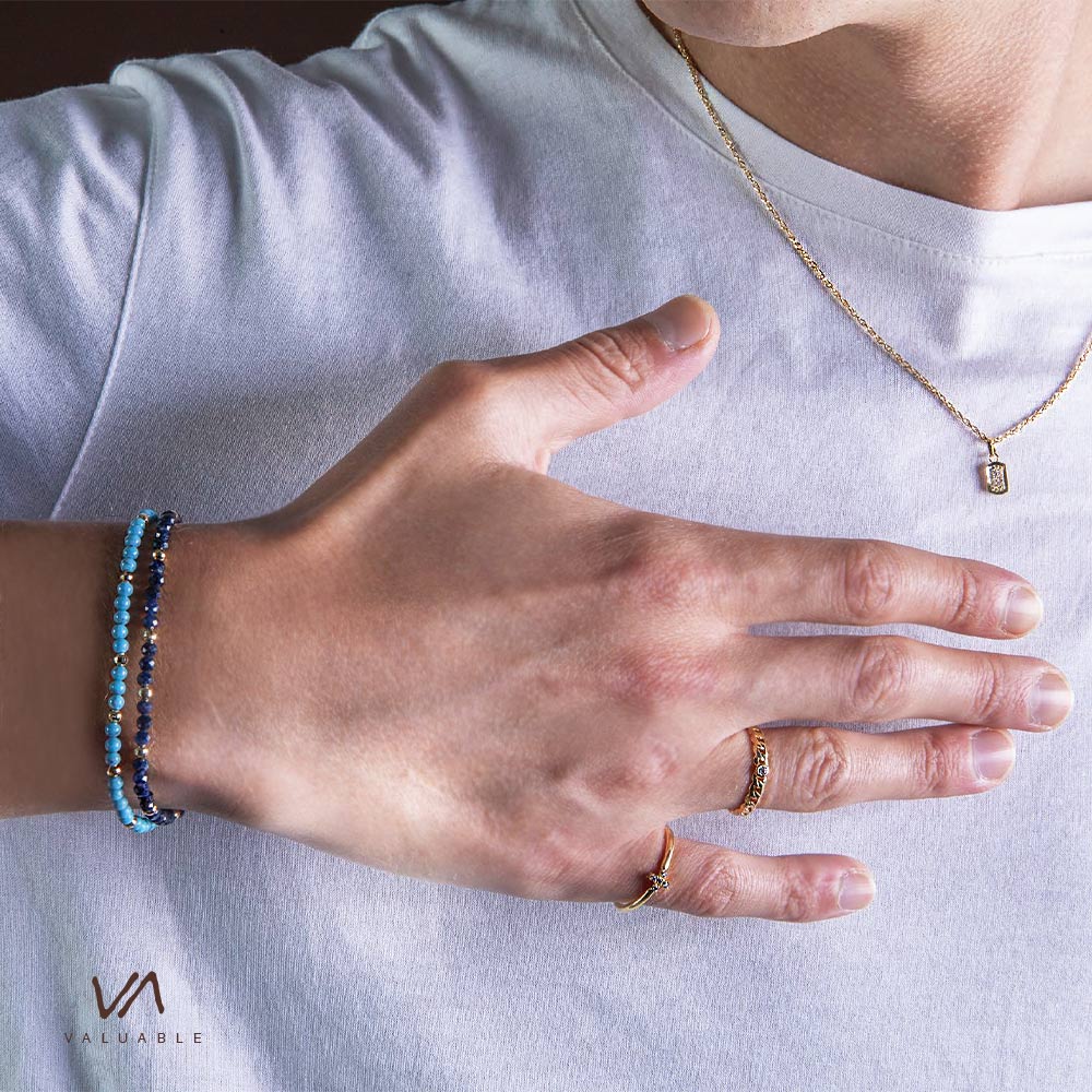 【 ファッション誌 掲載 】 18金 ブレスレット サファイア イエローゴールド 18k メンズ 「 VJ バスクアーレ Blue Velvet ブレス 」 ※長さ18cm 20cm 【 k18 天然石 ジュエリー アメリカン イタリア ハワイアン ネイティブ ブランド ビーズ 青 ブルー 小 宝石 】