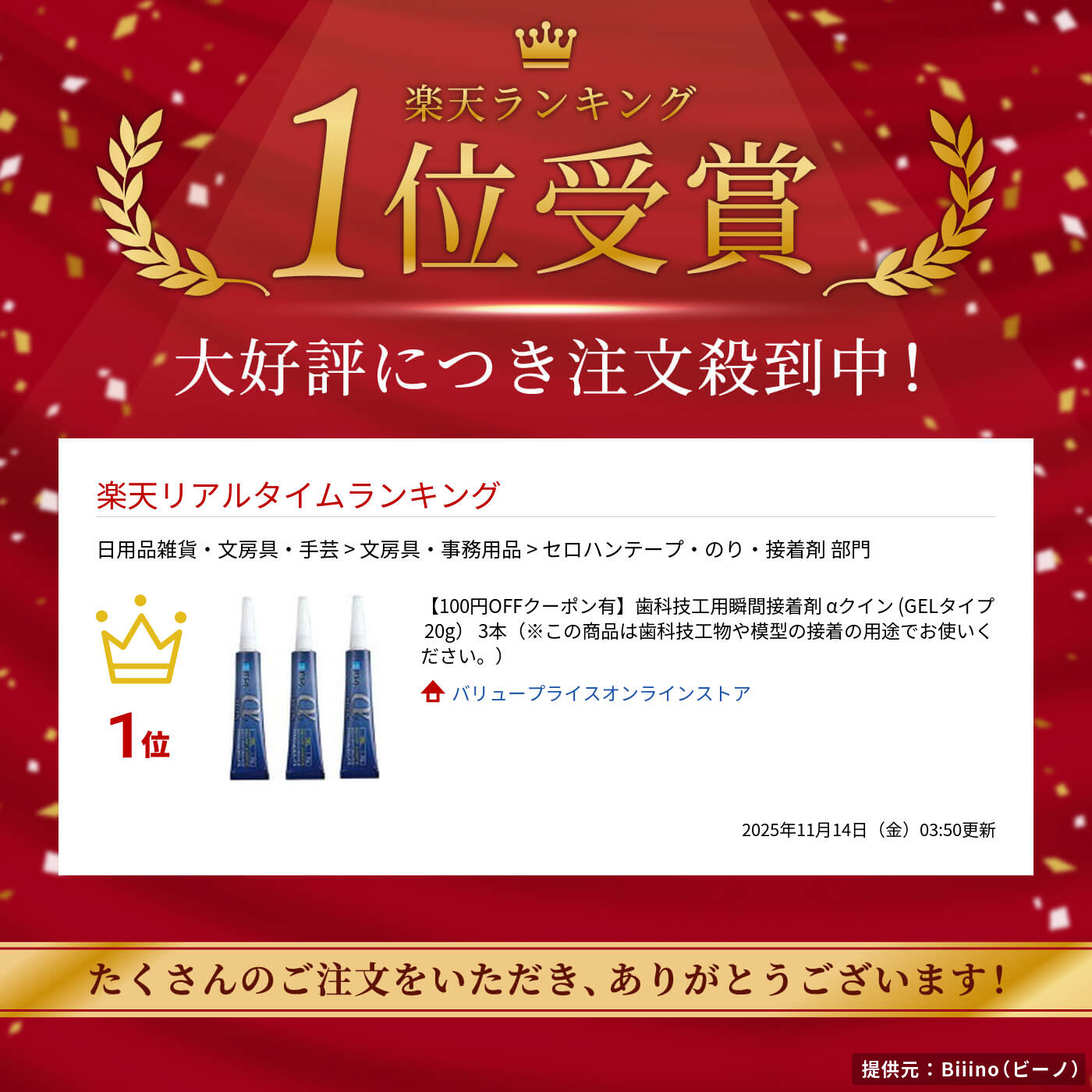 【16日23:59迄!最大1000円OFFクーポン有】歯科技工用瞬間接着剤 αクイン (GELタイプ 20g) 3本(※この商品は歯科技工物や模型の接着の用途でお使いください。)