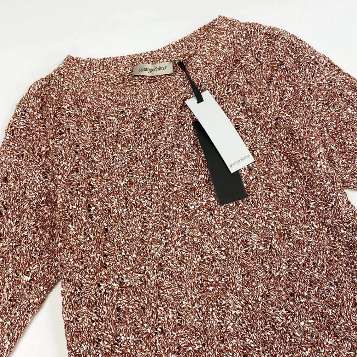 《未使用保管品》 gentry portofino ジェントリーポルトフィーノ ニットセーター ローゲージニット トップス S2GD616DE 38サイズ オレンジ ホワイト レディース