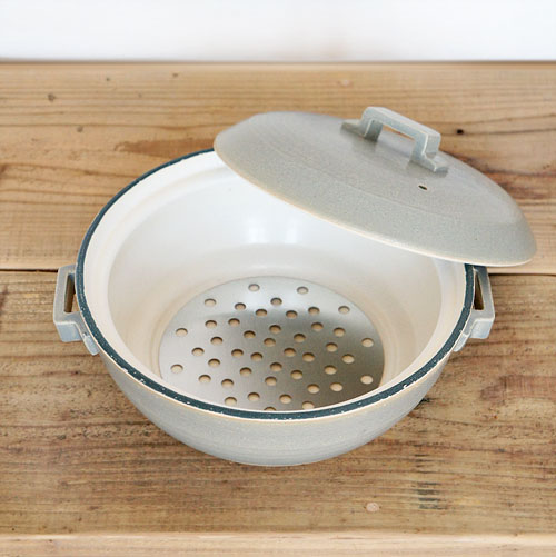 商品情報 サイズ・容量 約直径25.5cm(取手を含む28.5cm) 高さ13.0cm(蓋を含む)約2200cc 陶磁器の特性上サイズに個体差があります 材質・生産地 耐熱陶器・萬古焼(四日市) ご使用方法 IH使用OK100V・200V対応 IH調理器200Vの場合は中火以下でお使い下さい オーブン・直火使用OKハロゲンヒーター使用OK 電子レンジ・食洗機・炊飯使用不可 注意点 土物の土鍋の特色として小さなピンホール・黒点がございます 色ムラはこちらの商品の特徴ですので予めご了承ください。 表面に貫入と呼ばれる釉薬のヒビ模様がございますが 良品であり商品不良ではありません 予めご了承くださいませ 手作業につき、土鍋内面にグレー釉薬のハネが見られる場合があります 予めご了承くださいませ メーカーにより予告なく仕様が変更になる場合がございます 土鍋・耐熱製品素材特性 必ずご一読ください⇒クリック 「 土鍋のお取扱について 」 ・直火・オーブンでの調理が可能です。 ・食器洗浄機でのご使用はおやめ下さい。洗浄は手洗いで行い、乾いた布で良く水分を拭き取って保管して下さい。 ・金物や硬質な食器類とは、別に洗浄して下さい。 欠けや破損の原因になります。 ・熱い状態の本体を素手で触れたり、直接テーブルなどに置かないで下さい。 ・天ぷら・フライ等の油料理は危険ですので絶対にお辞め下さい。 ・長時間にわたる空炊きはしないでください。 ・熱くなった器を急激に冷やさないでください。割れる恐れがございます。 ・吸水性がある為、乾燥不十分のままにしておきますと、カビ・しみ・臭い発生の原因となります。 ----- 土鍋の目止め処理の仕方 ----- 1)土鍋を洗い外側の水分をよく拭き取り、土鍋の中にお米のとぎ汁を入れます。 2)20〜30分米のとぎ汁を沸騰させるか、もしくは、おかゆを炊いて下さい。 3)火を止めた後は完全にさめるまでそのままおいておき、その後水洗いします。 4)自然乾燥させます。IHと直火、どちらでもお使いいただける、実用性と可愛さを兼ね備えた土鍋です。 IHで調理し、ダイニングではカセットコンロで熱々を! 底部がフラットな作りで、従来の土鍋よりたっぷり深さがあり使いやすいです! 抜群の耐熱強度で、様々な熱源にかしこく対応します。 吸水率が極めて低く、カビや匂いがつきにくく、小さなヒビが入りにくいため丈夫で長持ちです。 もちろん安心の日本製です。 こちらには、一回り大きい9号サイズもございます。人数に合わせお選びいただけます。
