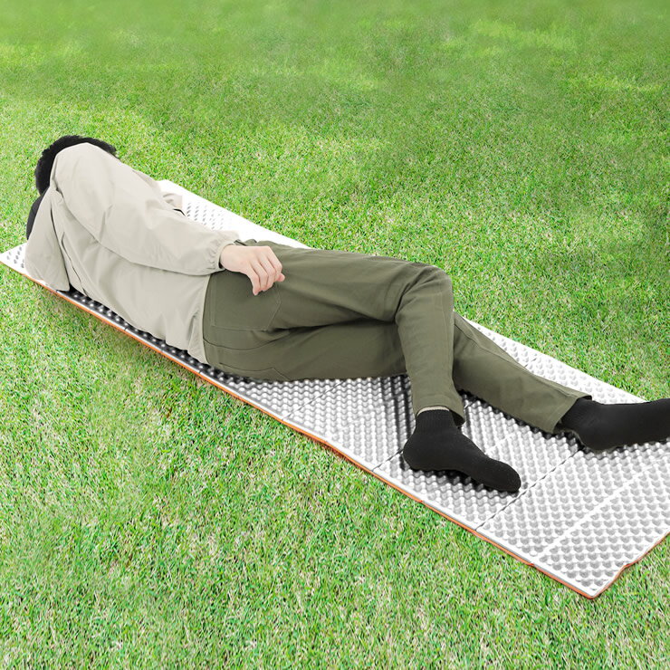 メーカー希望小売価格はメーカーサイトに基づいて掲載していますLAD WEATHER ラドウェザー リバーシブルで冬暖かく夏涼しい! 折りたたみアルミキャンプマット ladsheet014アウトドアブランドのラドウェザー から、軽量で持ち運びも便利なアルミキャンプマットが誕生。片面に高い断熱性能と熱反射効果をプラスするアルミ加工を行ったリバーシブル仕様。冬はアルミ面を上にすると体温を反射して暖かく、夏はアルミ面を下にすれば体温は逃がしながら地面からの熱を遮断。表裏を使い分ければオールシーズン使える。素材には高性能なXPEフォームを使用。軽量でクッション性、断熱性、耐久性に優れているので、地面のゴツゴツ感を和らげ、キャンプや登山などの、固い地面の屋外でも快適に眠れる。さらに、凹凸加工で体圧分散。点で支えて荷重を分散するから、底つき感も軽減できる。大人が寝転べるサイズなのに、重量はわずか330gと超軽量。リンゴ1個分の重さしかないので、登山やキャンプでも荷物にならない。エアーマットと違って、面倒な空気入れの必要なく設置も撤収も秒速。ジャバラ折り(アコーディオン式)なので、開くだけですぐ使えるので、「ちょっと休憩」したい時にもサッと敷いてサッと片づけられる。さらに穴あきの心配も無いので地面に直接敷けて、ゴツゴツした岩場でも使える。開き方を変えるだけで枕や椅子など色々な使い方ができたり、自分好みのサイズにカットしたり、使い方に合わせてカスタマイズできるのも魅力。キャンプ、登山、釣りなどのアウトドアレジャーかもちろん、防災用としてもおすすめ。■片面アルミのリバーシブル片面に高い断熱性能と熱反射効果をプラスするアルミ加工を行ったリバーシブル仕様。■冬は暖かく、夏は涼しい冬はアルミ面を上にすると体温を反射して暖かい。 夏はアルミ面を下にすれば熱を逃がせる。■高性能なXPEフォーム使用素材は軽量でクッション性、断熱性、耐久性に優れたXPEフォーム。 地面の硬さを和らげる。■凹凸加工で体圧分散凹凸加工が体を点で支えるから、荷重を分散し、底つき感を軽減する。 空気も流れて蒸れにくい。■重量わずか330gで超軽量重量はりんご1個分しかないから、登山やキャンプ、ピクニックなど、どこにでも持って行ける。■設置も撤収も秒速面倒な空気入れの必要なく、開くだけですぐ使えるので、ちょっと休憩したい時にも。■使い方は自由自在ジャバラ折りなので、開き方を変えるだけで枕や椅子など色々な使い方ができる。■どんな場所でも使用できるエアーマットと違って耐久性が高く、穴があく心配がないので、ゴツゴツした岩場でも使える。■丸洗いできてお手入れ簡単水を吸いにくい素材なので、汚れた時は丸洗いも出来て衛生的。■コンパクトサイズ56cm×12cm×13cmと小さくたためる。持ち運びにも便利なゴムバンド付き。■自分サイズにカットOK好きな長さにカットできるので、身長に合わせてカットすれば、さらにコンパクトになる。■キャンプや登山に軽量で荷物にならず、寝袋の下に敷くとクッション性、断熱性が高いので快適に眠れる。■防災用にコンパクトに収納できるから、備えておけば停電で暖房が使えない時にも心強い。■釣りやレジャーにさっと広げてすぐに使え、レジャーシートよりクッション性も高いので、「ちょっと休憩」にも。カラー01.グレー02.カーキ03.ブルー04.オレンジ05.イエローサイズ展開サイズ 186cm×56cm×1.7cm収納サイズ 13cm×56cm×12cm素材XPEフォーム(片面アルミ加工)備考※掲載画像と実商品のカラーは、モニターの状態等によって若干異なることがございます。※入荷時期により、色やデザイン等が異なる場合があります。