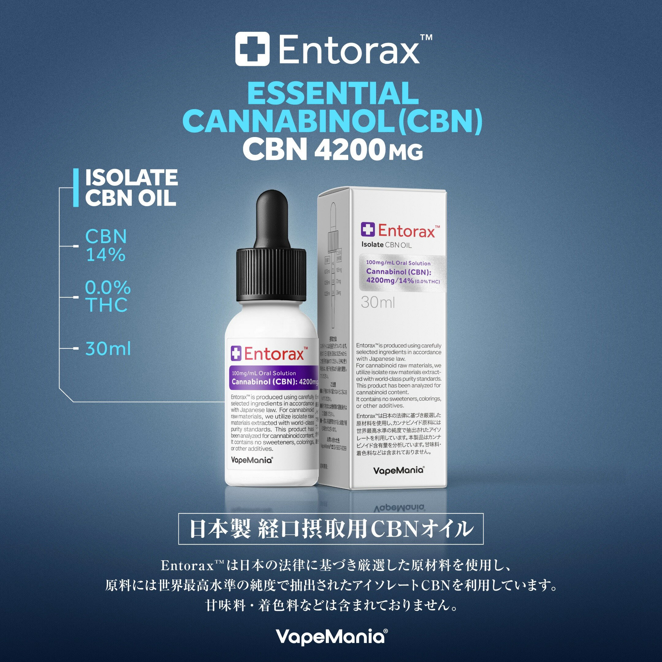 \20%OFFクーポン有/ CBN オイル VapeMania Entorax 超高濃度 cbnオイル cbn14%4200mg 30ml 日本製 カンナビノール 無色透明 太白ごま油 ノンフレーバー 経口摂取 舌下 飲み物 ドロップ drop ストレス 寝る前 リラックス 最強配送 送料無料