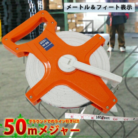 グラウンドや運動場のライン引きに! 大きなものの採寸にも便利! メートル&フィート表示 50mメジャー[おす すめ][送料無料(一部地域を除く)]