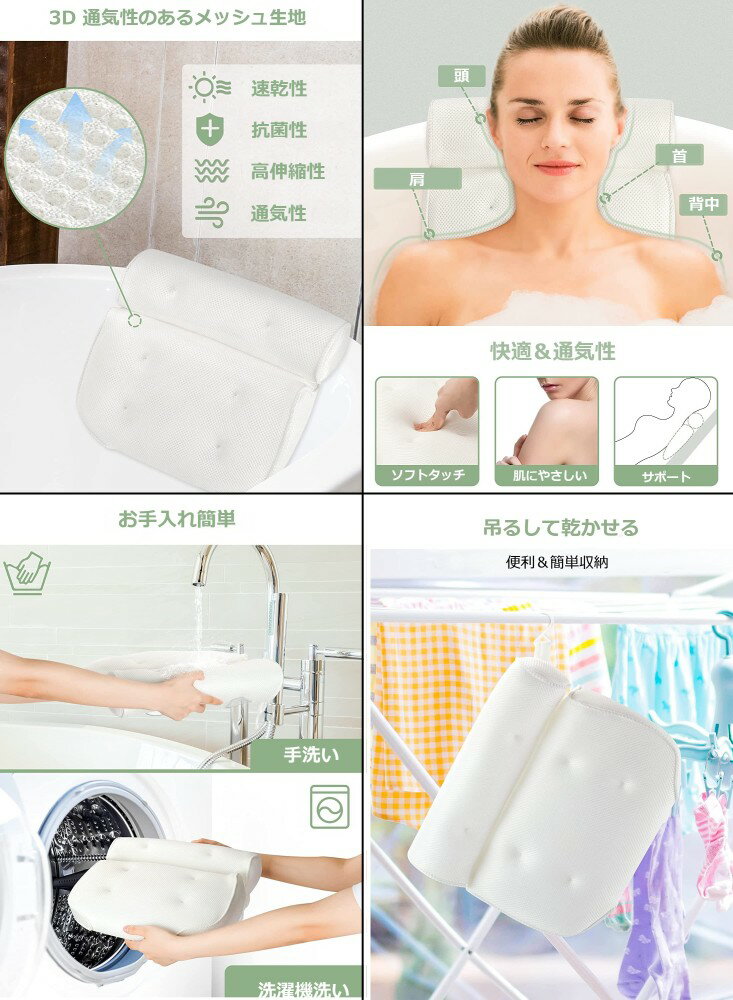バスピロー 吸盤付き お風呂枕 3Dメッシュ クッション バスタブ 浴槽 バス枕 滑り止め リラックス[送料無料(一部地域を除く)]