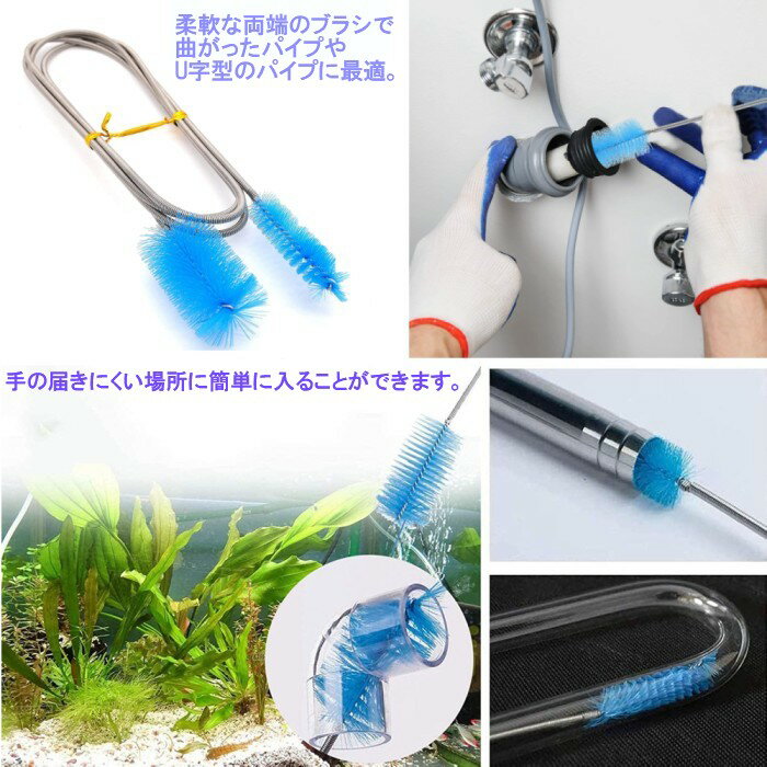 パイプブラシ ブルー 排水口 排水管 掃除 水槽 アクアリウム ホース フレキシブル ワイヤーブラシ パイプクリーナー[ゆうパケット発送、送料無料、代引不可]