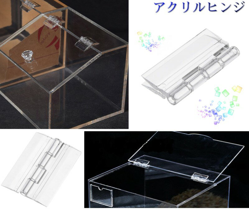 商品説明 透明で透き通ったアクリルヒンジ。 高耐久性、高透明性があり長期使用に適しています。 収納ボックス、ジュエルケースなどのヒンジ取り付けに。 ※ビス止めの穴はございません。 ※本商品のみでは取り付けできません。別途アクリル用の接着剤をご用意ください。 ※輸入品の為、取扱説明書は付属しておりません。 ※一部の仕様やデザインは予告なく変更になる場合がございます。 商品仕様 セット数 10個セット サイズ 4.5×3.5cm 重さ 5g(1個あたり) 素材 アクリル 保証について ■メーカー保証なし 記載の注意事項を除く初期不良品の場合のみ、商品到着から1週間以内のみ対応いたします。 ご到着後はお早めに商品状態をご確認ください。 注意事項 ●こちらの商品は、新品です。 ●モニター環境により、実際のカラーと異なって見える場合がございます。 【ゆうパック優先配送の注意事項】(1) 締め切り時刻迄に決済が完了した注文が当日発送となります。(2) 店舗休業日のご注文は翌営業日の発送となります。(3) 商品名に「優先配送との同梱不可」の記載がある商品は優先配送商品との同梱はできません。(4) 商品名に「優先配送との同梱不可」の記載がされた商品が同梱されていた場合は、当日又は翌日発送されませんのでご注意下さい。(5) 同梱商品の中に「優先配送」の商品が1つ以上存在する場合は、配送方法に「定形外郵便」等、「優先配送」以外を選択した商品も「優先配送」で発送されます。※商品の発送は「ゆうパック優先配送」又は「定形外郵便」を選択できます。★配送方法に「定形外郵便」を選択した場合は運送便の都合上、化粧箱を外して簡易包装で発送する場合がございます。プレゼント用にご購入される場合はご注意願います。<定形外郵便に関する注意事項> ・ 定形外郵便に関しては基本的にポストに投函する為、 配達時に何らかのトラブル等が有り、万一、購入された商品が配送事故・紛失・破損等によりお手元に届かない場合でも弊社は責任を負いかねますので予めご了承下さい。(配送中の事故等は、免責とさせて頂きます。) ・ 定形外郵便に関しては代金引換払い及び時間指定サービスはご利用頂けません。 ・ 通常便と比べると到着までに時間がかかります。 ・ 伝票番号による荷物の追跡を行うことはできません。★配送方法に「ゆうパック優先配送」を選択した場合は送付先が北海道、沖縄、離島の場合は注文金額により以下の送料が必要です。・北海道の場合、注文金額が3,980円未満は880円、3,980円以上は送料無料です。・沖縄、離島の場合、注文金額が9,800円未満は880円、9,800円以上は送料無料です。